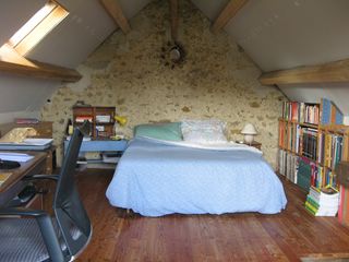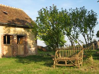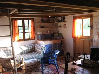 Le gîte - partie 1 - (35 m2) Rez de Chaussée : Salon-cuisine 18m2 / Etage : Chambre 18m2 (belle vue sur verger) Chauffage central gaz (chaudière murale indépendante De Dietrich), EDF, eau, téléphone, ADSL, WC à compost. |