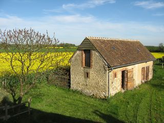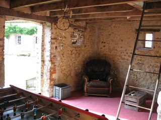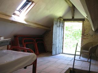Le gîte - partie 2 à finir de restaurer - (35 m2) Rez de Chaussée : 18m2 / Etage : chambre 18m2 (belle vue sur mare) Cette partie du bâtiment attend l’achèvement de sa restauration : porte et fenêtre à poser et radiateur à brancher. |